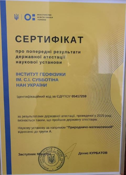 ІНСТИТУТ ГЕОФІЗИКИ ІМ.С.І.СУББОТІНА УВІЙШОВ ДО ТОП 10 НАУКОВИХ УСТАНОВ